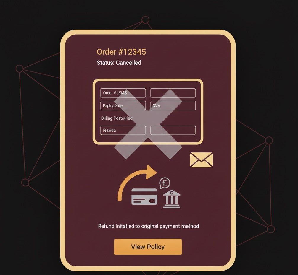 We reserve the right to cancel the contract if payment fails, if there are insufficient stocks to deliver the goods you have ordered, or if we cannot deliver to your specified area. If we cancel, we will notify you by email and issue a full refund within 14 working days.